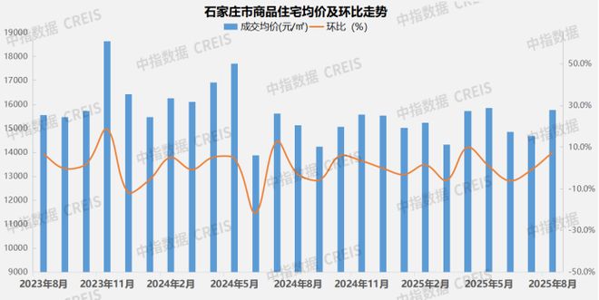 石家庄商品住宅成交均价:2025年8月石家庄商品住宅成交均价为15766元/㎡bg大游。