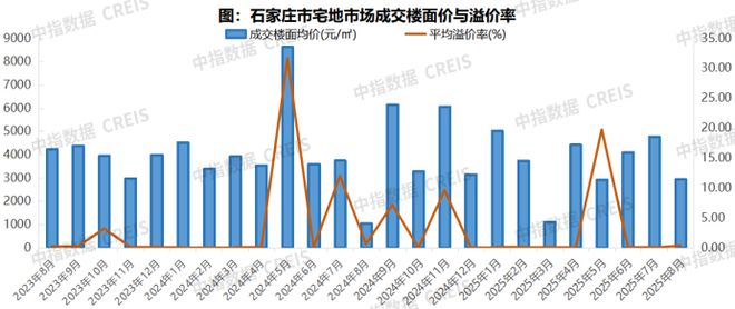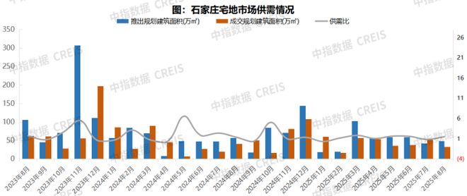 供求规模:从供给端来看,2025年8月石家庄推出8宗宅地,规划建筑面积48.23万㎡。从需求端来看,2025年8月成交5宗宅地,规划建筑面积32.71万㎡。